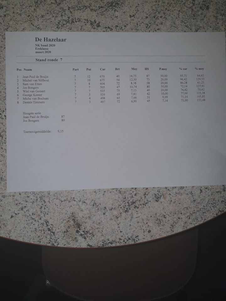 Afgelopen weekend mijn 100e Nederlandse kampioenschap in de ereklasse gespeeld. Een mooi moment. Ik weet nog goed hoe ik 28 jaar geleden met knikkende knieën mijn debuut maakte. Gelukkig na een minder jaar ook eindelijk weer eens een goed toernooi gespeeld. Tegen JP na een 87-0 in de 1e beurt toch nog een 100-94 eruit gehaald in 3 beurten. Mijn beste partij verloren dit weekend nota bene… Wel van de beste speler, want JP was met name op zondag geweldig.