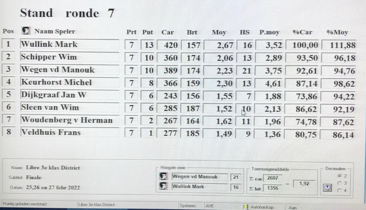 Mark is eerste geworden bij de district finale 3e klasse libre. Hij kan nu door naar de gewest finale die het weekend van 18 maart in Hengelo (G) wordt gespeeld.