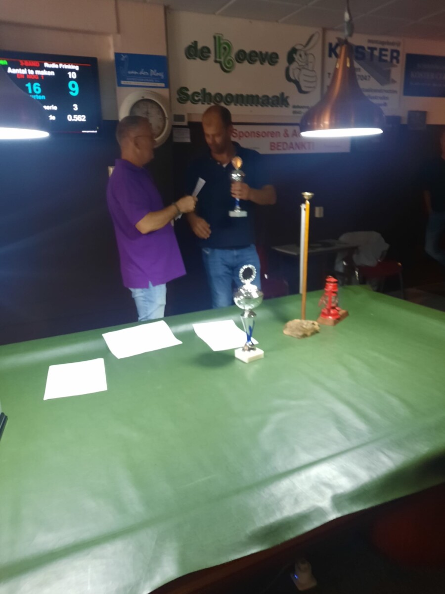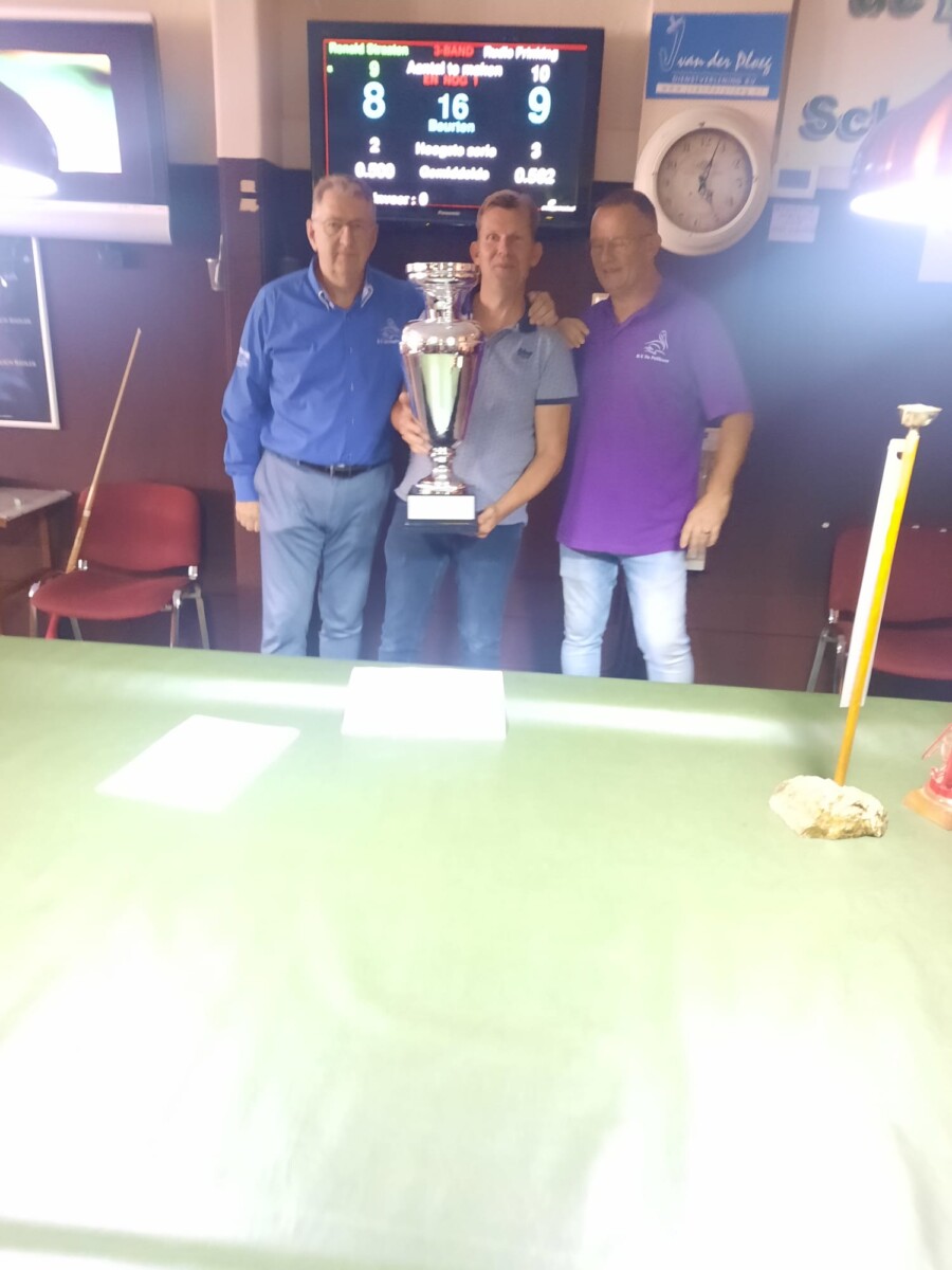 IJsseltoernooi 2023 Geplaatst op 08-09-2023Geüpdatet op 08-09-2023door HeijeCategorieën:Nieuws Na een gezellig weekend biljarten is Edwin Willemsen de winnaar geworden van de 2023 editie. Alle deelnemers bedankt voor hun sportieve bijdrage maar ook de scheidsrechters en overige vrijwilligers een dikke pluim voor hun inzet. Heije