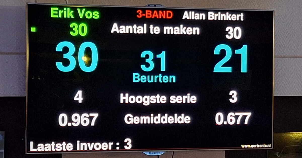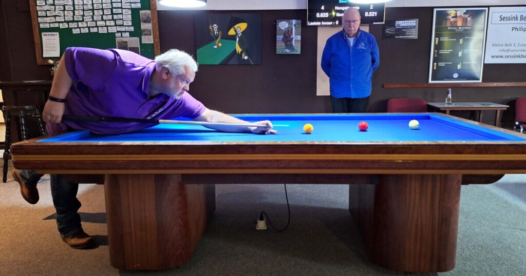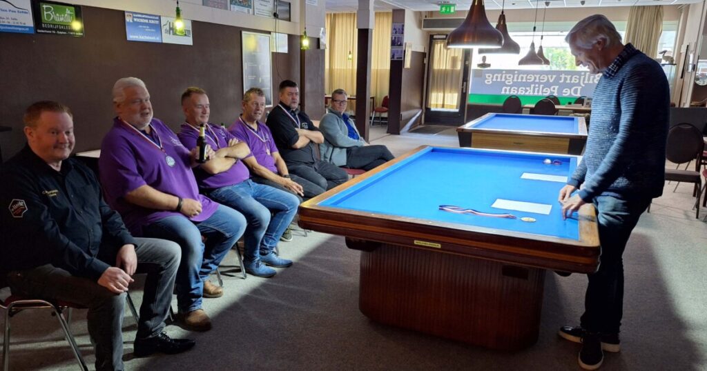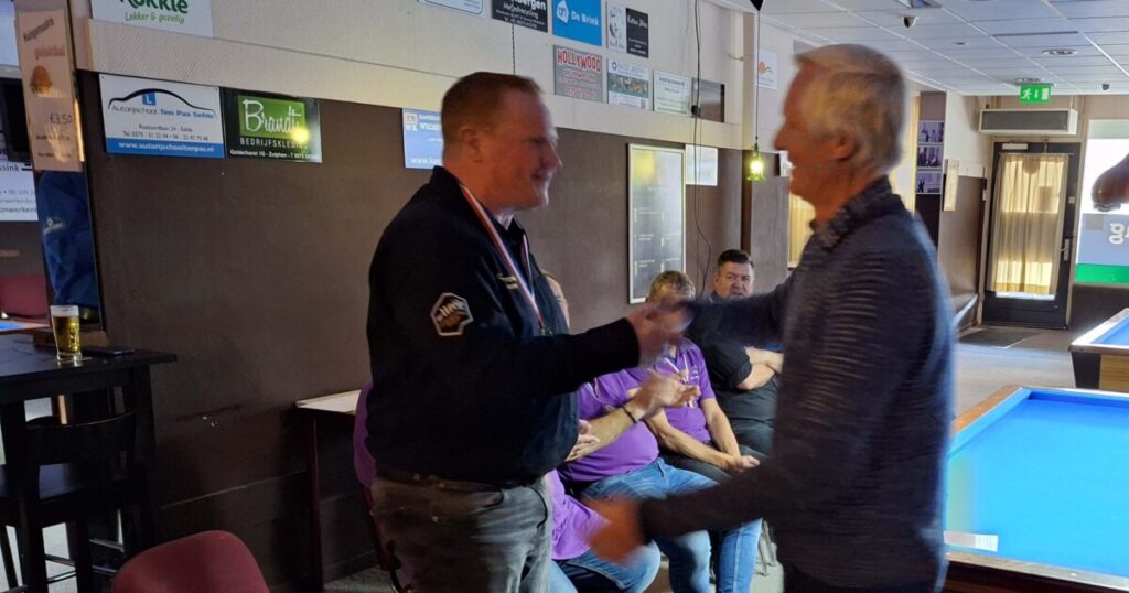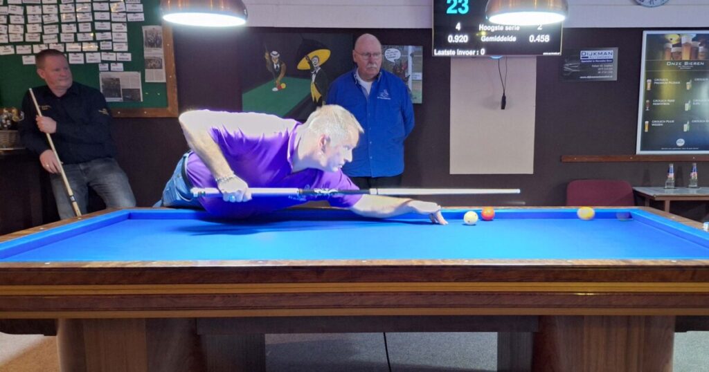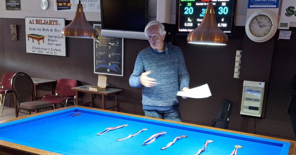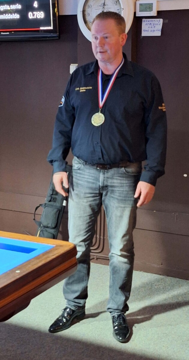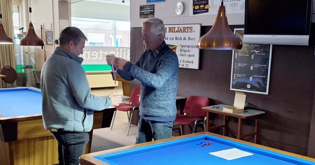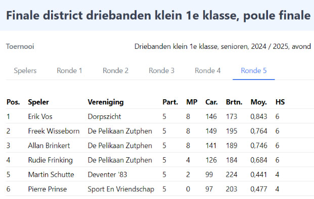Op de andere tafel won Freek zijn partij met een goed moyenne waardoor hij op de valreep de 2e plek afsnoepte van Allan, die 3e werd! Rudie werd 4e