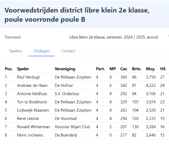 Op 18 en 19 oktober werden in ons biljartcentrum twee voorrondes gespeeld. Er werd door alle deelnemers vol overgave gestreden om de caramboles en wedstrijdpunten. Het spelniveau was zeer wisselend, van erg goed tot niet goed. Al met al was het in beide poules spannend tot het eind.