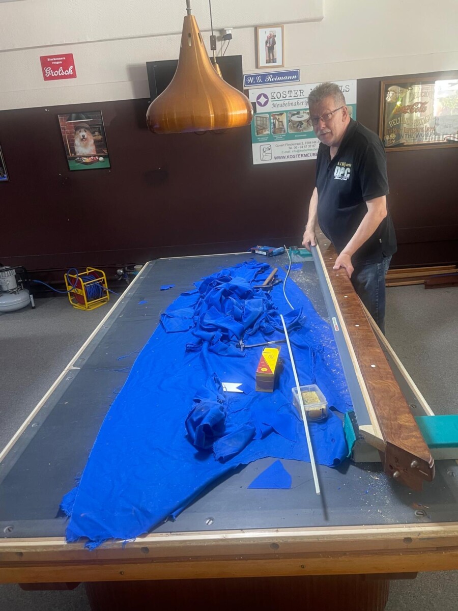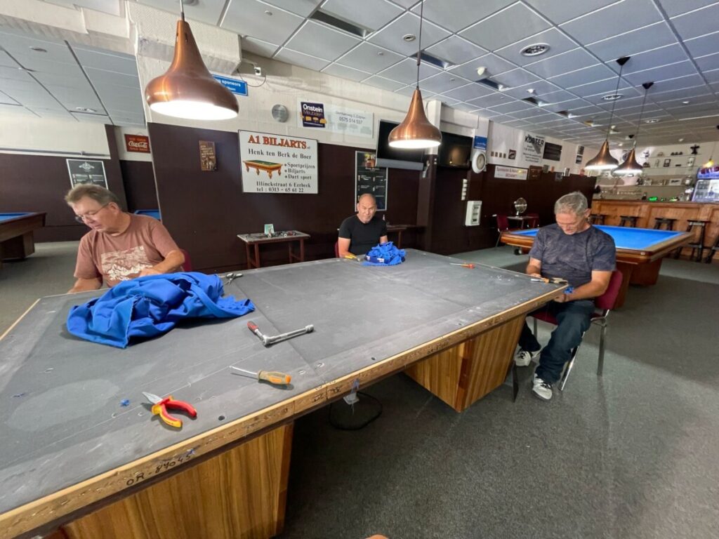 Na 2 jaar was het weer tijd voor nieuwe lakens op onze biljarts. Gezien het aantal biljarts altijd een flinke klus, dank aan alle helpers de afgelopen dagen.