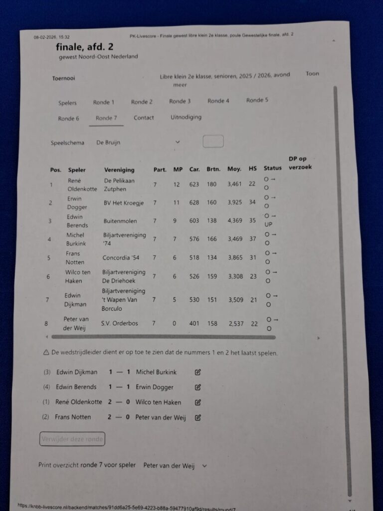 Het finale weekend van het Gewestelijk kampioenschap 2e klasse libre bij de Pelikaan is gewonnen door onze eigen troef, René.