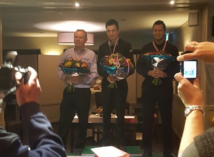 Dave Christiani eindigde als derde op het podium met alleen twee verliespartijen tegen de twee koplopers en 26.34 gemiddeld. Vierde werd Sam van Etten.